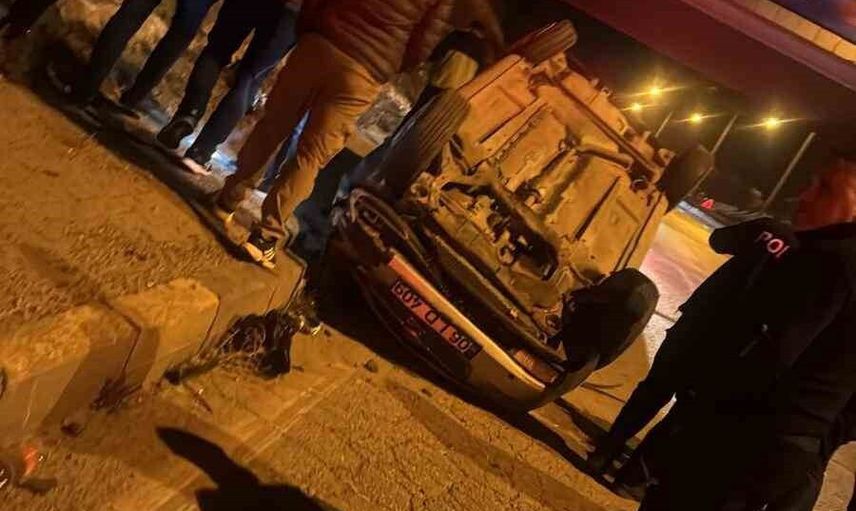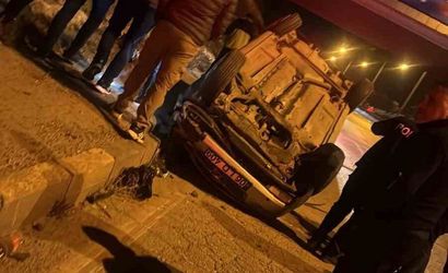 Sürücü Ç.Z. idaresindeki araç, savrulma sonucu kaldırma çarparak ters döndü. Araçtaki aynı aileden 4 kişi (sürücü ve 3 aile ferdi) yaralandı.