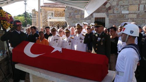 Emekli Deniz Yarbay İz Metin, Foça'da düzenlenen askeri törenle son yolculuğuna uğurlandı; naaşı Foça Mezarlığı'na defnedildi.