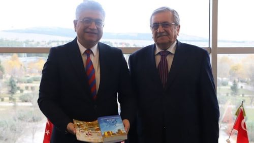 Emekli Milli Eğitim Müdürü Ahmet Urfalı ve eşi Ümran Urfalı, Prof.Dr. Süleyman Kızıltoprak'ı ziyaret ederek eserlerini takdim etti; eğitim, tarih ve kültür konuları ele alındı.