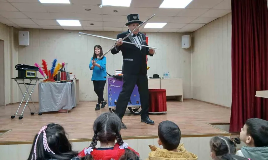 Abdullah Karapınar tarafından sunulan ilüzyon gösterisi, hem eğlendirici unsurlar hem de izleyici katılımı içeren yapısıyla öğrencilerin dikkatini çekti ve onlara unutulmaz bir gün yaşattı.