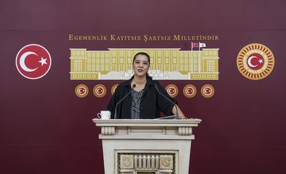 Emek Partisi (EMEP) Gaziantep Milletvekili Sevda Karaca Demir, TBMM'de basın toplantısı düzenledi.