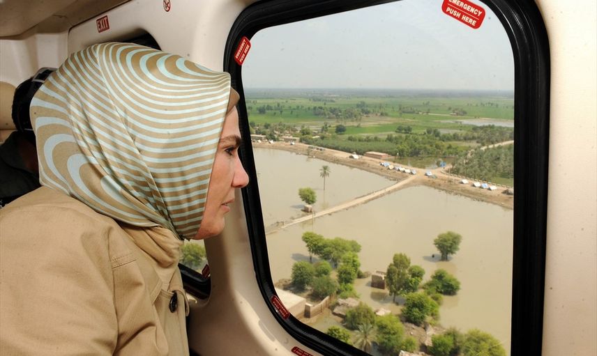 Emine Erdoğan, 2010 yılında o dönem Başbakan olan Cumhurbaşkanı Erdoğan'ın eşi sıfatıyla selden en çok etkilenen Güney bölgesine giderek sahra hastanesini ve çocuk merkezine dönüştürülen çadırı ziyaret etmişti. Bu deneyimin ışığında, yeniden aynı acıyla sınanan bölge halkına geçmiş olsun dileklerini iletti ve dünyanın merhamet ve dayanışma ile Pakistan'a destek vermesini temenni etti.