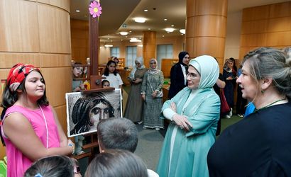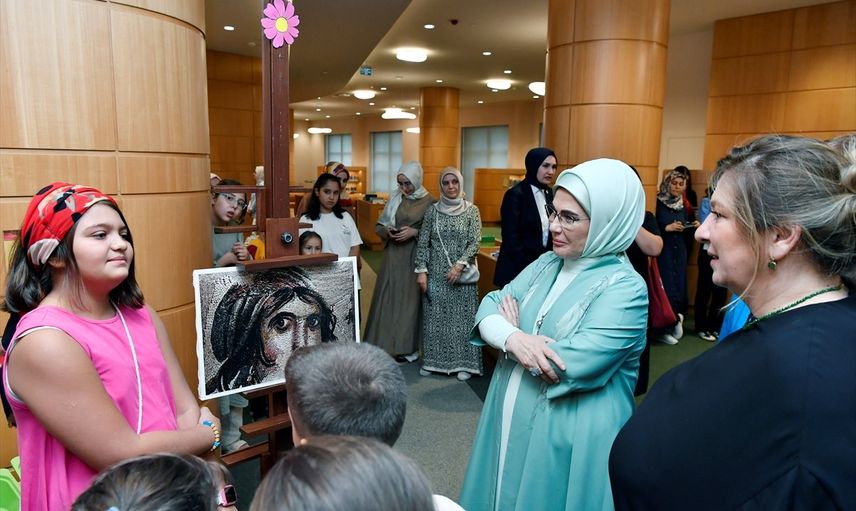 Ardından iki lider eşi, Nasrettin Hoca Çocuk Kütüphanesi'ndeki çocukları ziyaret ederek onlarla sohbet etti. Lider eşleri, çocukların kendilerinin yazıp ciltledikleri "Değerler Treni" ve "En İyi Futbol Takımı" adlı kitapları imzaladı.