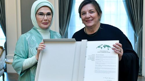 Emine Erdoğan, Tamar Bagrationi ile Cumhurbaşkanlığı Külliyesi'nde Görüştü Emine Erdoğan, Cumhurbaşkanı Recep Tayyip Erdoğan'ın eşi olarak, Gürcistan Cumhurbaşkanı Mikheil Kavelashvili'nin eşi Tamar Bagrationi'yi Cumhurbaşkanlığı Külliyesi'ndeki Devlet Konukevi'nde karşıladı. Cumhurbaşkanlığı kaynaklarının aktardığı görüşmede iki taraf, kültürel yakınlıklar ve işbirliği olanakları üzerinde…