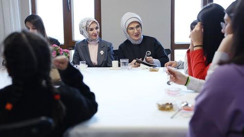 Emine Erdoğan, Hatay Serdar Demir Çocuk Evleri Sitesi'nde kız çocuklarıyla bir araya gelerek onlarla özel olarak ilgilendi.