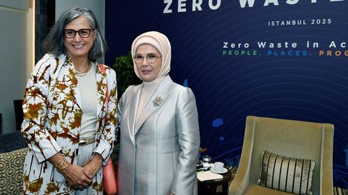 Emine Erdoğan ve BM-Habitat İcra Direktörü Anaclaudia Rossbach, İstanbul'daki Uluslararası Sıfır Atık Forumu kapsamında Gazze'nin yeniden imarı ve Türkiye'de açılması planlanan Bölge Ofisi'ni ele aldı.