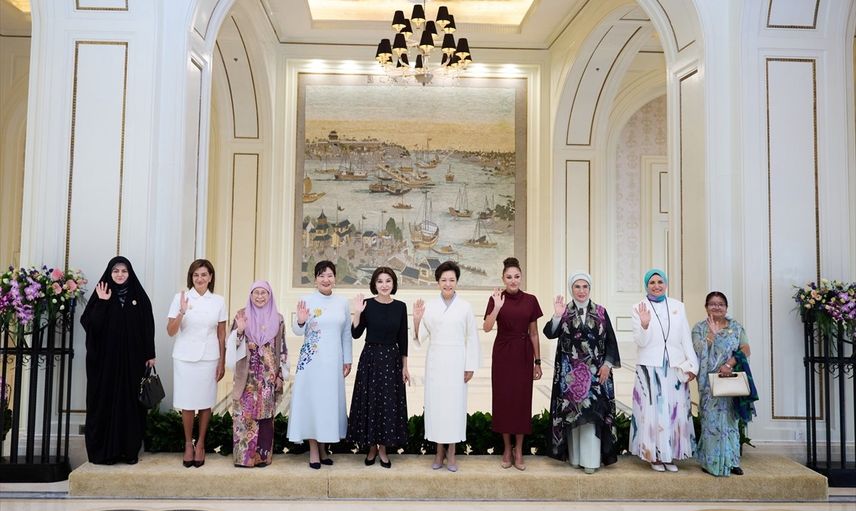 Cumhurbaşkanı Recep Tayyip Erdoğan'ın eşi Emine Erdoğan (sodla), Çin Devlet Başkanı Şi Cinping'in eşi Pıng Liyüen (sağda) ev sahipliğinde lider eşleri ile bir araya geldi.