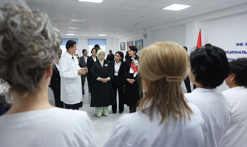 Cumhurbaşkanı Recep Tayyip Erdoğan'ın eşi Emine Erdoğan ile Kırgızistan Cumhurbaşkanı Sadır Caparov'un eşi Aygül Caparova, Kırgızistan'dan yılda 35 bin kadın ve çocuğun tedavi gördüğü, 150 binden fazla çocuğa sağlık danışmanlık hizmeti veren başkent Bişkek'teki Ulusal Anne ve Çocuk Koruma Merkezi'ni ziyaret etti. Erdoğan, merkez bünyesinde görev yapan doktorlar ve sağlık görevlileriyle kısa bir sohbet gerçekleştirdi.