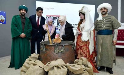 Manisa İl Kültür ve Turizm Müdürlüğü ekibi tarafından gerçekleştirilen temsili mesir macunu karımı ve Mesir Festivali canlandırmasının ardından Emine Erdoğan ile Dr. Wan Azizah İsmail de temsili olarak mesir macunu karımı yaptı.