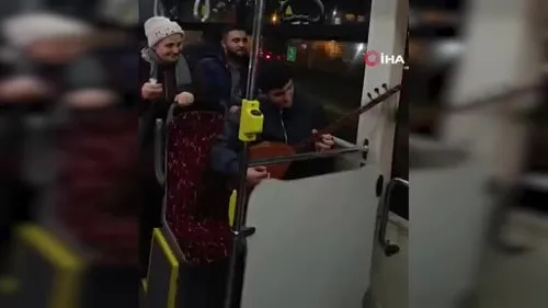 Eminönü-Arnavutköy 336 hattında bir yolcunun saz çalması yolculara sıcak anlar yaşattı; anlar cep telefonlarıyla kaydedildi.