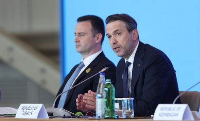 Enerji ve Tabii Kaynaklar Bakanı Alparslan Bayraktar (sağda), Bakü'de düzenlenen Güney Gaz Koridoru 11. Danışma Kurulu ve Yeşil Enerji Danışma Konseyi 3. Bakanlar Toplantısı'nda konuştu.