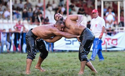 Antalya'da, 673'üncüsü düzenlenen Tarihi Elmalı Yağlı Güreşleri, 15 bin kişilik Recep Gürbüz Stadı'nda gerçekleştirildi. Finalde, rakibi Feyzullah Aktürk'ü mağlup eden Enes Doğan (fotoğrafta) başpehlivanlığı kazandı.
