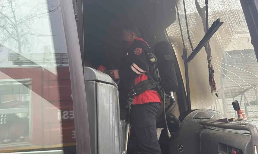 Edinilen bilgilere göre olay, saat 14.45 sıralarında Yusuf Turgut Caddesi üzerinde meydana geldi. Kaporta işlemleri için bir boyacının önüne park edilen otobüsün ön kısmından henüz belirlenemeyen bir nedenle dumanlar yükselmeye başladı ve kısa sürede alevler büyüdü.