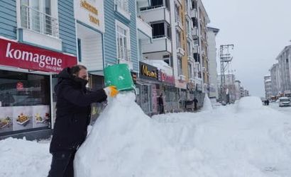 VAN’IN ERCİŞ İLÇESİNDE KAR YAĞIŞINDAN DOLAYI İŞ YAPAMAYAN ESNAF KARDAN ADAM YAPTI.