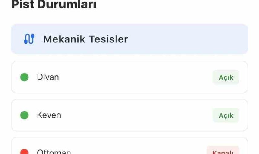 Uygulama üzerinden kayak severler, mekanik tesislerin hangi kapılarda açık olduğu, bağlantı yollarının durumu, hava sıcaklığı ile kayak pistleri ve kızak alanlarının güncel durumu gibi bilgilere kolayca erişebilecek. Bu veriler anlık olarak paylaşılıyor ve kullanıcıların planlama yapmasını kolaylaştırıyor.