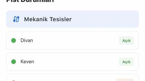 Kayseri Büyükşehir Belediyesi’nin Akıllı Şehir Kayseri uygulaması, Erciyes Kayak Merkezi pist ve tesis bilgilerini anlık olarak kullanıcıya sunuyor.