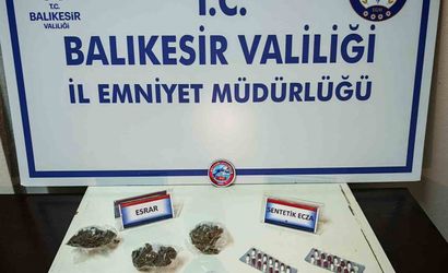 Yapılan aramalarda 6 ayrı poşet halinde toplam 90 gram esrar ile 3 şarjör içinde toplam 41 adet sentetik ecza ele geçirildi.