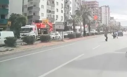 Erdemli'de motosikletin yayanın üzerine çarpması: 2 yaralı, kaza anı araç kamerasında