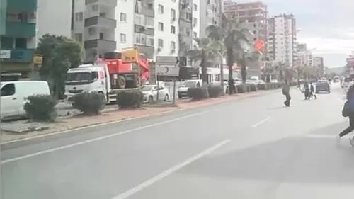 Mersin'in Erdemli ilçesinde yaya geçidini kullanmayan kadına motosiklet çarptı; sürücü ve yaya yaralandı, kaza anı araç kamerasına yansıdı.