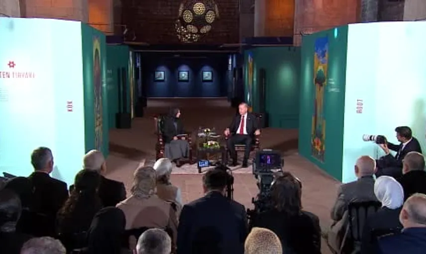 Cumhurbaşkanı, minyatürden ebruya, kalem işinden çiniye, hüsnü hattan tezhibe kadar gelenekli İslam sanatlarının inanç ve medeniyetimizin derinliklerini gösterdiğini, bu sanatların estetik şuurun somutlaşmış hâli olduğunu ifade etti. İstanbul'un fetih sonrası hat ve tezhibin başkenti haline geldiğini, Ali Bin Yahya Sufi, Şeyh Hamdullah Efendi ve Hafız Osman Efendi gibi ustaların önemli eserler verdiğini kaydetti.