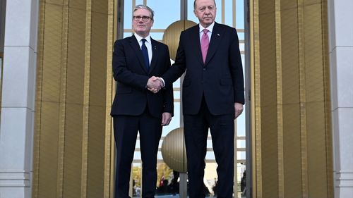 Cumhurbaşkanı Erdoğan, Türkiye'yi ziyaret eden İngiltere Başbakanı Keir Starmer'i Cumhurbaşkanlığı Külliyesi'nde resmi törenle karşıladı; bando, 21 pare top atışı ve heyet görüşmeleri gerçekleştirildi.