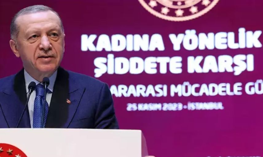 Erdoğan, “Şiddetsiz bir Türkiye Yüzyılı için çalışmalarımızı kesintisiz sürdürüyoruz. Kadınların hak taleplerinde ve biz de onlara verdiğimiz destekte samimi olduğumuz için bugünlere geldik.” dedi.