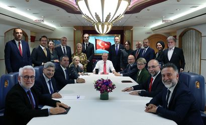 Cumhurbaşkanı Recep Tayyip Erdoğan, Amerika Birleşik Devletleri'nin (ABD) New York kentindeki Birleşmiş Milletler (BM) 80. Genel Kurulu temasları ve Washington'da ABD Başkanı Donald Trump ile görüşmesinin ardından yurda dönüşünde, uçakta gazetecilere açıklamalarda bulundu ve soruları yanıtladı. Uçakta Anadolu Ajansı (AA) Yönetim Kurulu Başkanı ve Genel Müdürü Serdar Karagöz de yer aldı.