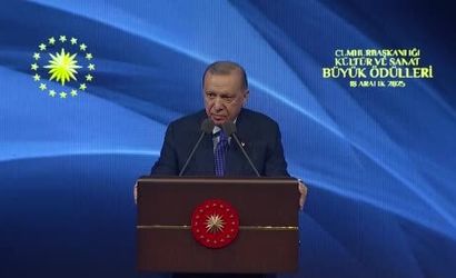 ANKARA — Cumhurbaşkanı Recep Tayyip Erdoğan, Beştepe Millet Kongre ve Kültür Merkezi’nde düzenlenen Cumhurbaşkanlığı Kültür ve Sanat Büyük Ödülleri töreninde konuştu. Erdoğan, törene katılanlara ve töreni yurt içi ile yurt dışından izleyenlere selam göndererek, ödül sahiplerinin biyografi filminin izlendiğini ve sanat ile ilim dünyasına katkılarından dolayı teşekkür etti.