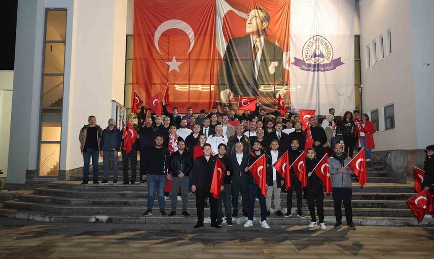 Erciyes Üniversitesi (ERÜ) personel ve öğrencileri, A Millî Futbol Takımı'nın Romanya maçının ardından oynanan Kosova karşılaşmasını Sabancı Kültür Sitesi'ndeki dev ekranda birlikte izledi. Etkinlik, üniversite topluluğunun milli takım maçlarına verdiği desteği öne çıkardı.