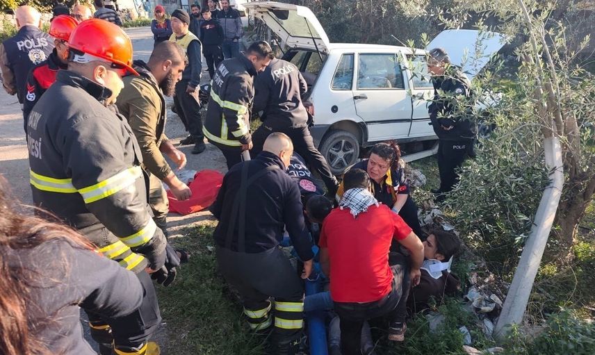 Erzin'de otomobil bahçeye uçtu: 3 kişi yaralandı