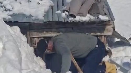 Erzincan Ağılözü köyünde bahar hazırlığı yapanlar, ev ve ahırların metrelerce karla kaplandığını, kapıların kapanması nedeniyle bazı kişilerin bacadan içeri girdiğini bildirdi.
