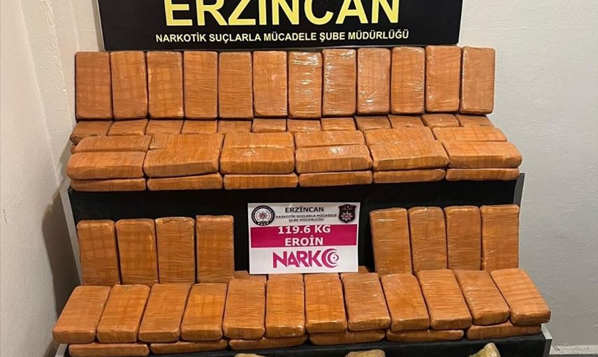 Erzincan'da gerçekleştirilen bir operasyonda, polis ekipleri tarafından durdurulan bir kamyonda toplam 119 kilo 600 gram eroin ele geçirildi. Olayla ilgili olarak kamyonun sürücüsü A.Ö. gözaltına alındı ve daha sonra tutuklandı.