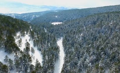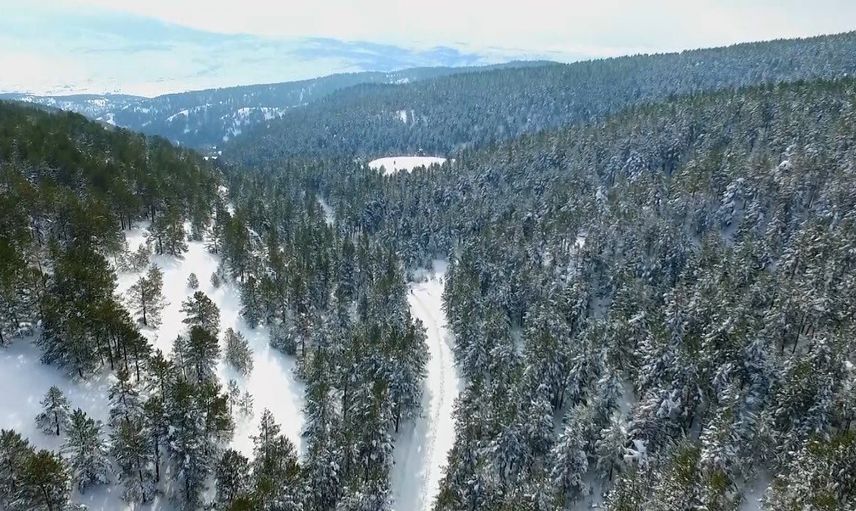 Kar yağışı sonrası çam ormanları beyaz örtüyle kaplanırken, parkın kış güzelliği drone ile havadan görüntülendi. Oluşan kartpostallık manzaralar, doğa ve fotoğraf tutkunlarının ilgisini çekti.