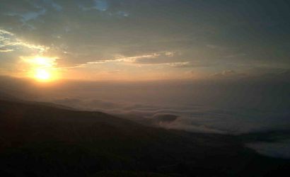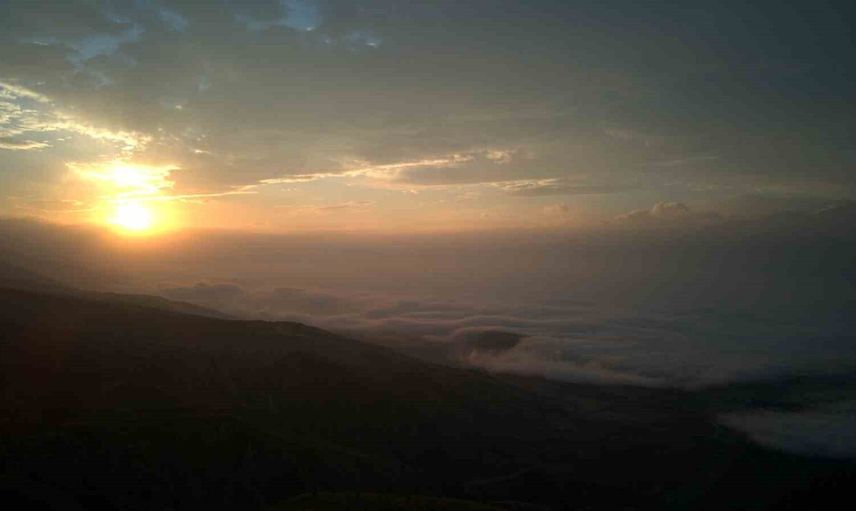 Erzincan ovasında gün doğumuyla birlikte oluşan yoğun sis, Keşiş Dağı zirvesinden izlendiğinde adeta kartpostallık bir manzara sundu. Güneşin ilk ışıkları sis tabakasını altın tonlarına büründürürken, ortaya izleyenlere görsel bir şölen çıktı.