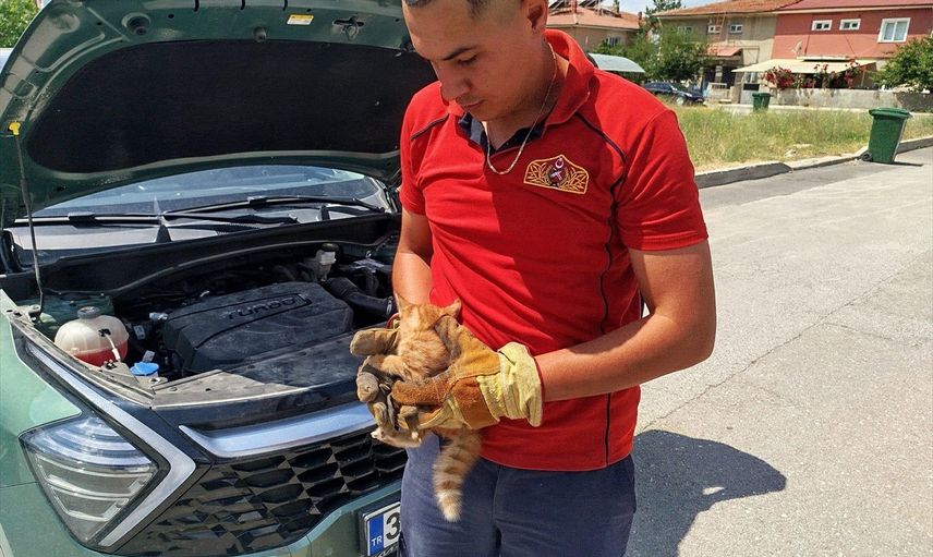 Erzincan'da İtfaiye, Otomobilin Motoruna Sıkışan Kedi Yavrularını Kurtardı