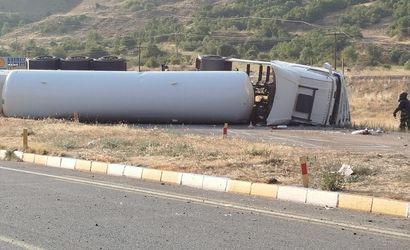 Erzincan'da kimyasal gaz yüklü tırın devrilmesi sonucu Erzincan-Erzurum kara yolu kısa süreli araç trafiğine kapatıldı.