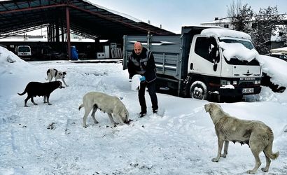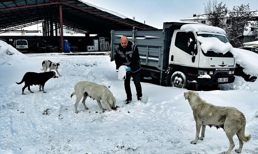 Erzincan'da polis ekipleri, olumsuz hava koşullarında sahipsiz hayvanların aç kalmaması için yaklaşık 100 kilogram tavuk dağıttı.