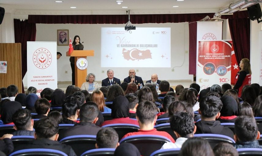 Erzincan Aile ve Sosyal Hizmetler İl Müdürlüğü tarafından düzenlenen "Vatan ve Kahramanlık Buluşmaları" etkinliği kapsamında, şehit yakınları ve kahraman gaziler, Erzincan Gül-Celal Toraman Tarım Mesleki ve Teknik Anadolu Lisesi öğrencileriyle bir araya geldi.
