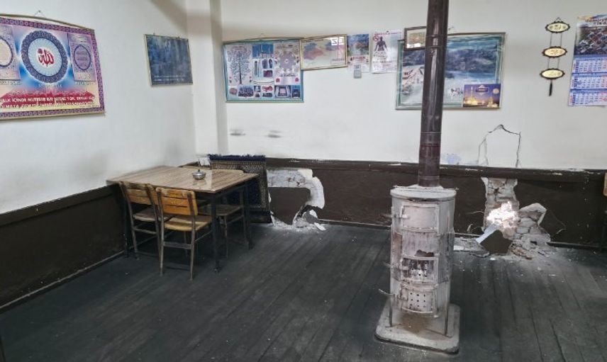 Erzincan'da yıkım çalışmasında çay ocağı duvarı yıkıldı; müşteriler son anda dışarı çıktı