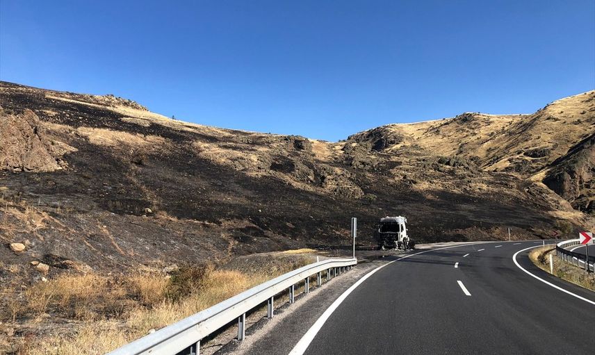 Erzincan'da seyir halindeyken alev alan tır, kullanılamaz hale geldi. Kısa sürede büyüyen yangın, yolun kenarındaki otluk alana sıçradı. Bölgeye gelen itfaiye ekipleri tır ve arazideki yangını söndürdü.