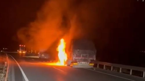 Erzincan'ın Üzümlü ilçesinde seyir halindeki TIR alev aldı