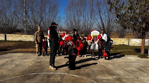 Erzincan İl Jandarma Komutanlığı, 20 Kasım Dünya Çocuk Hakları Günü'nde Karadiğin İlkokulu'nu ziyaret ederek öğrencilere itaat gösterisi, sohbet, pasta ve hediyeler sundu.