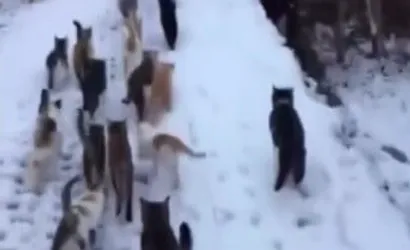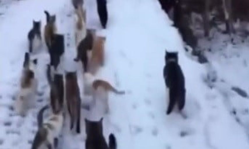 Soğuk havanın etkisini artırdığı bölgede, aç kalan kediler için harekete geçen duyarlı kişi, kedileri isimleriyle çağırarak onları bir araya topladı. Kedilerin isimleri duyulur duyulmaz vatandaşın etrafında toplanması izleyenlerin dikkatini çekti.