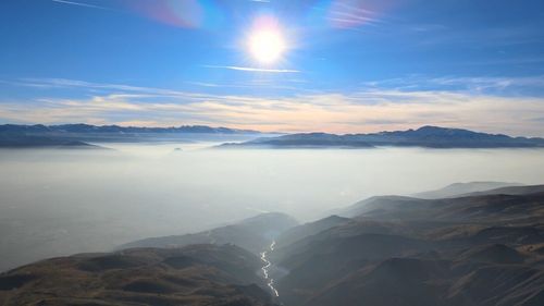 Erzincan Ovası, Keşiş ve Munzur dağları arasında oluşan yoğun sisle beyaz bir örtüye büründü; drone görüntüleri şehir siluetini sis denizi içinde gösterdi.