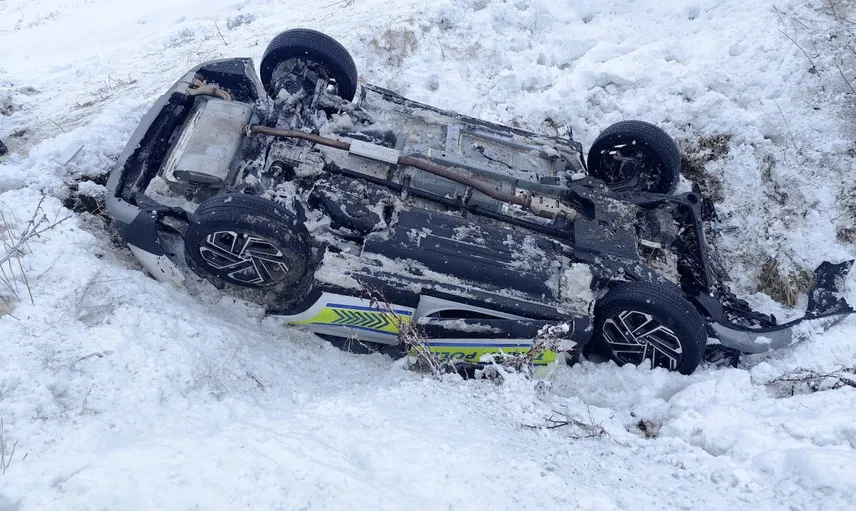 Edinilen bilgilere göre, kardan dolayı kontrolden çıkan polis aracı şarampole yuvarlandı. Kazada araçta bulunan iki polis memuru yaralandı.