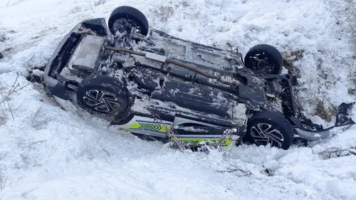 Erzincan-Sivas karayolunda kardan kayma sonucu şarampole yuvarlanan polis aracında iki memur yaralandı; hastaneye kaldırıldılar, sağlık durumları iyi.