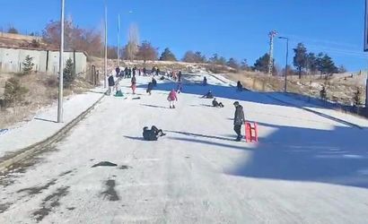 ERZİNCAN’DA DONDURUCU SOĞUĞA RAĞMEN ÇOCUKLARIN KIZAK SEVİNCİ