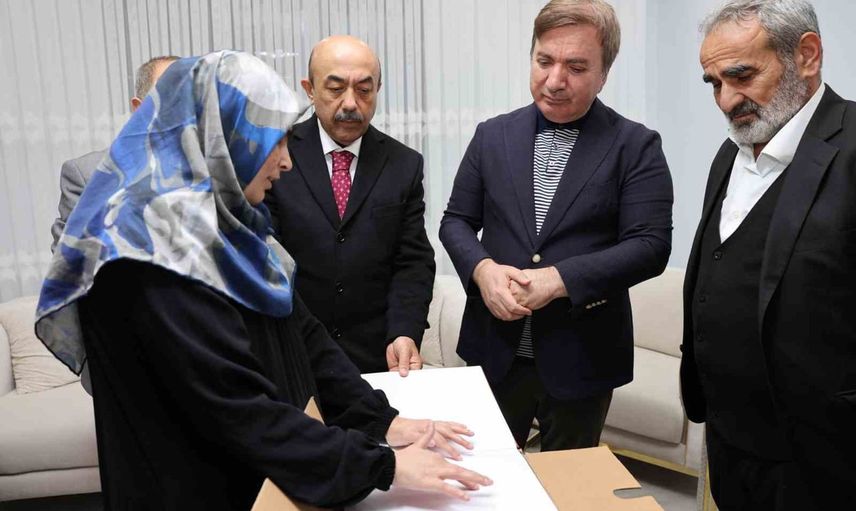 Erzincan Valisi Aydoğdu, görme engelli hafız Kader Macit'e Braille alfabesiyle yazılmış Kur'an hediye etti