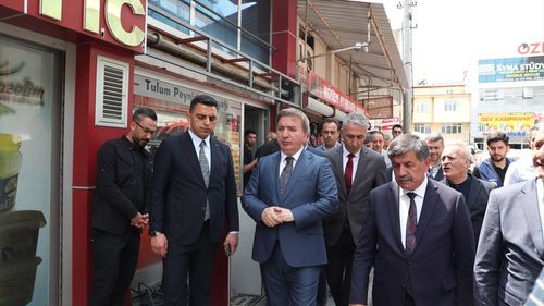 Erzincan'da çıkan yangın sonrası Vali Hamza Aydoğdu, esnafı ziyaret ederek hasar tespit çalışmalarını inceledi.