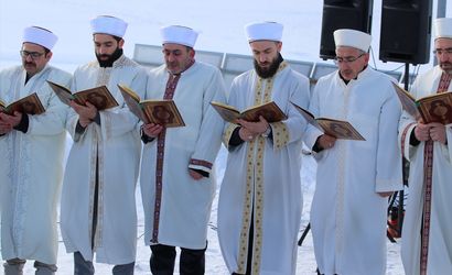 Erzurum'da şehrin ve ülkenin afet ile belalardan korunması için yaklaşık 500 yıldır devam eden "1001 Hatim" geleneği için soğuk havada düzenlenen programla hatimler okunmaya başlandı.